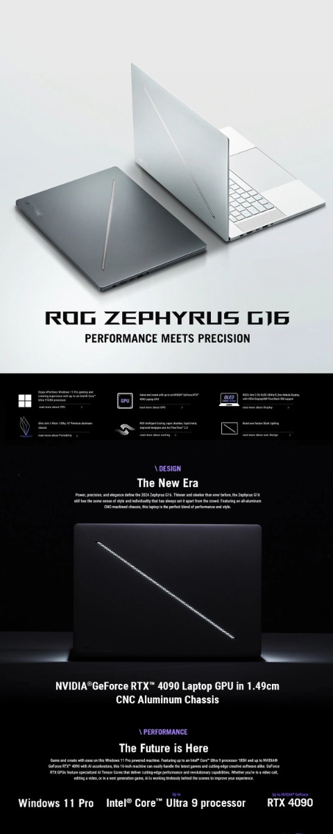 GA605WI-QR050W اسوس روج زيفروس جي 16 بمعالج AMD Ryzen AI 9 HX 370 رام 32 جيجا 1 تيرا SSD رسومات RTX 4070 سعة 8 جيجا، 16بوصة 240 هرتز ويندوز 11