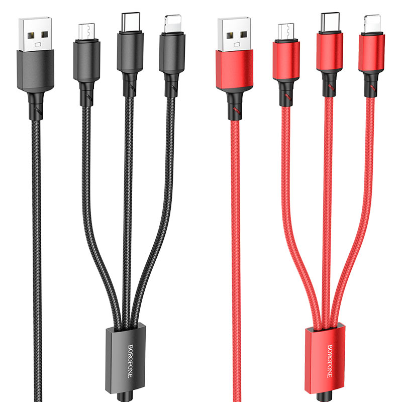 BOROFONE BX72 كابل شحن 3 في 1، متوافق مع منافذ Lightning / Micro-USB / USB-C، بطول متر واحد، تيار يصل إلى 2 أمبير.