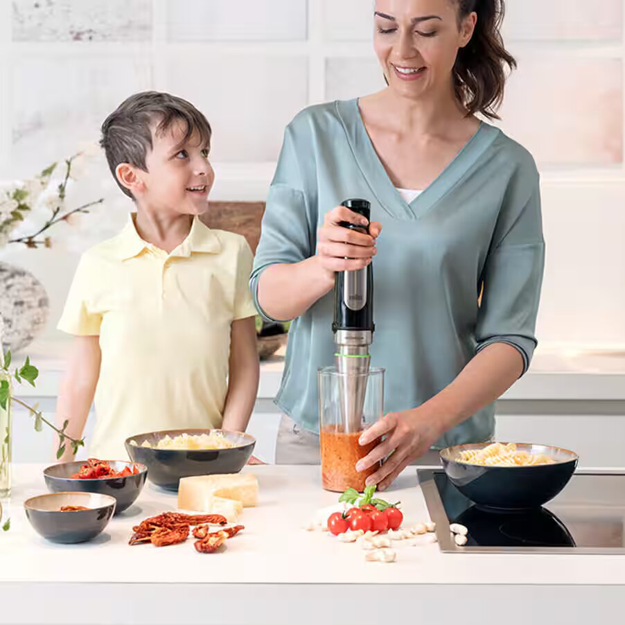 بفضل تقنية ActiveBlade الفريدة من براون، والتي تتحرك لأعلى ولأسفل، يمكنكِ تقطيع المكسرات والزنجبيل وأي مكونات أخرى يصعب تقطيعها بسهولة تامة. يوفر العمود المرن المبتكر مساحة تقطيع فعالة أكبر بنسبة 250%.* (*مقارنةً بخلاطات براون اليدوية ذات العمود غير المزود بتقنية ActiveBlade)