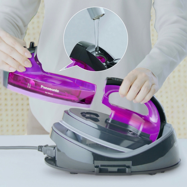 تتيح لك المكاوي اللاسلكية بدء الكي على الفور، كما توفر قدرة سلسة على التعامل نظرًا لعدم وجود سلك يعترض طريقك في الكي. وعندما تنتهي من الكي، يسهل ترتيبها — فما عليك سوى وضع الوحدة في الحقيبة.