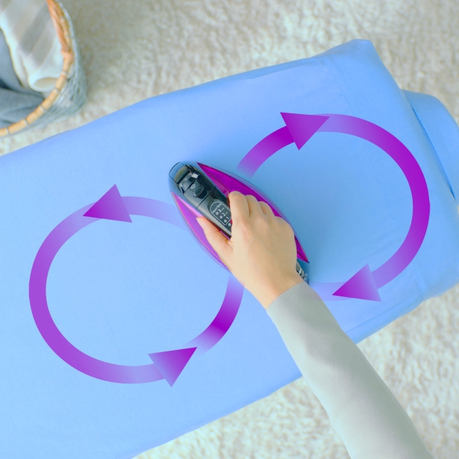 يوفر الجمع بين المكواة اللاسلكية وقاعدة المكواة المتناسقة متعددة الاتجاهات المستدقة من كلا الطرفين حرية الحركة للاستمتاع بالكي الفعال مع كل أجزاء الملابس.