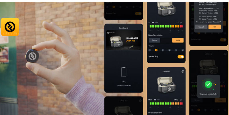 وصّل نظام LARK M2 بتطبيق LarkSound لضبط إعدادات الصوت، مثل مستوى الصوت وإلغاء الضوضاء، وتحديث البرامج الثابتة، أو التحقق من حالة الصوت مباشرةً - كل ذلك من هاتفك الذكي المتوافق مع نظامي iOS وAndroid. عند التصوير باستخدام جهازك المحمول، يمكنك تفعيل تسجيل الفيديو عن بُعد بالضغط مرتين على الزر الموجود في جهاز الإرسال. كما يمكن لهاتفك الذكي تشغيل تسجيلاتك عند توصيله بجهاز الاستقبال دون الحاجة إلى فصله.