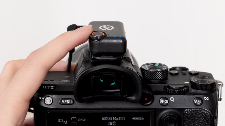 يتميز جهاز الاستقبال ثنائي القنوات للتثبيت على الكاميرا بواجهة تثبيت مدمجة. يسجل منفذ إخراج TRS مقاس 3.5 مم الصوت مباشرةً على جهازك المختار. تتيح لك عناصر التحكم المدمجة التبديل بين وضع الاستريو والمونو أو ضبط مستوى صوت التسجيل. تُظهر مؤشرات LED حالة وضع كل وحدة إرسال. استخدم كابل TRS مقاس 3.5 مم المرفق لتكييف المنفذ الموجود على جهاز الاستقبال مع مجموعة واسعة من الأجهزة.
