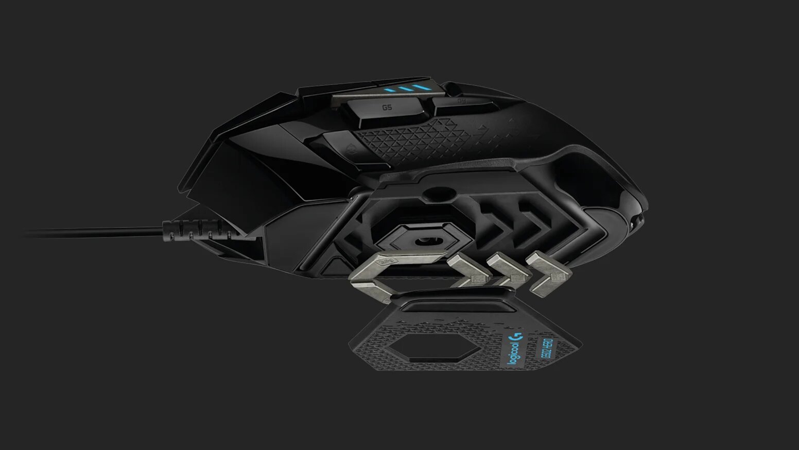 اضبط إحساس الفأرة وانزلاقها بدقة لصالحك. تأتي فأرة G502 HERO مع خمسة أوزان بوزن 3.6 غرام لكل منها، ويمكن توزيعها بعدة تشكيلات في الأمام أو الخلف أو اليسار أو اليمين أو الوسط.