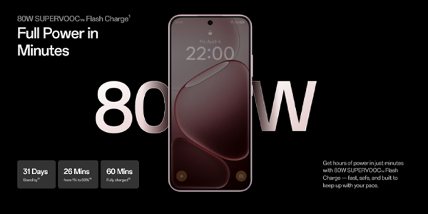 بطارية بسعة 7000 مللي أمبير، تدعم الشحن السريع بقدرة 80W SUPERVOOC، توفر وقت استخدام طويل وشحنًا سريعًا.