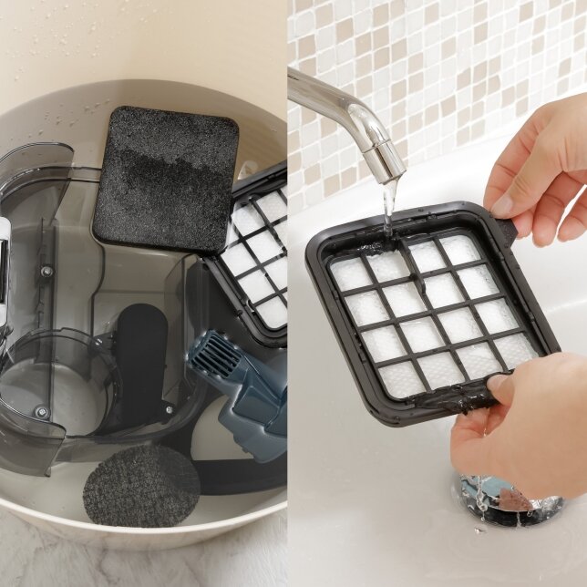 يضفي صندوق الغبار والفلتر القابلان للغسل بالكامل سهولةً على مهمة المحافظة على نظافة كل شيء وسلامته.